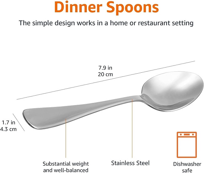 Stainless Steel Dinner Spoons with Round Edge, Pack of 12, Silver
