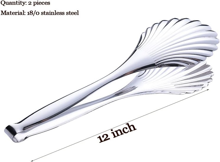 Stainless steel regular salad serving tongs, perfect for dinners, buffets, cake, pie, butter, salad and family friends style Christmas dinner settings.